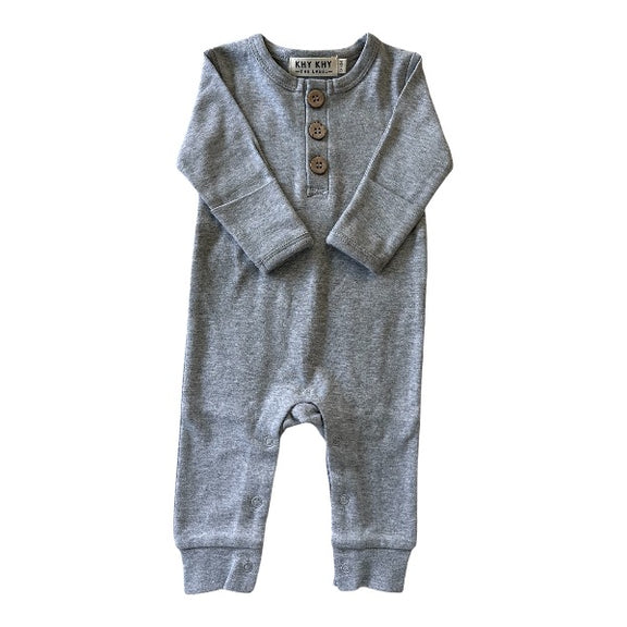 BR-02 Organic Cotton Button Romper | Heather Grey