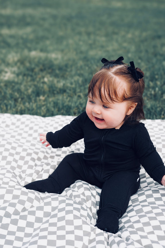 Indulge in our newest foldover zipper sleeper in Carbon, as black as the night, bringing your baby’s sleep as deep as the night.