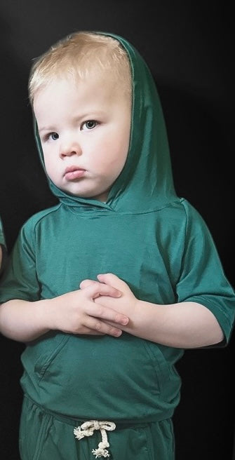 Restez au frais cet été avec nos adorables petits ensembles shorty en bambou à capuche ! Ces tenues sont à la fois confortables et pratiques. Fabriqué à partir de 95% viscose de bambou et 5% Spandex.