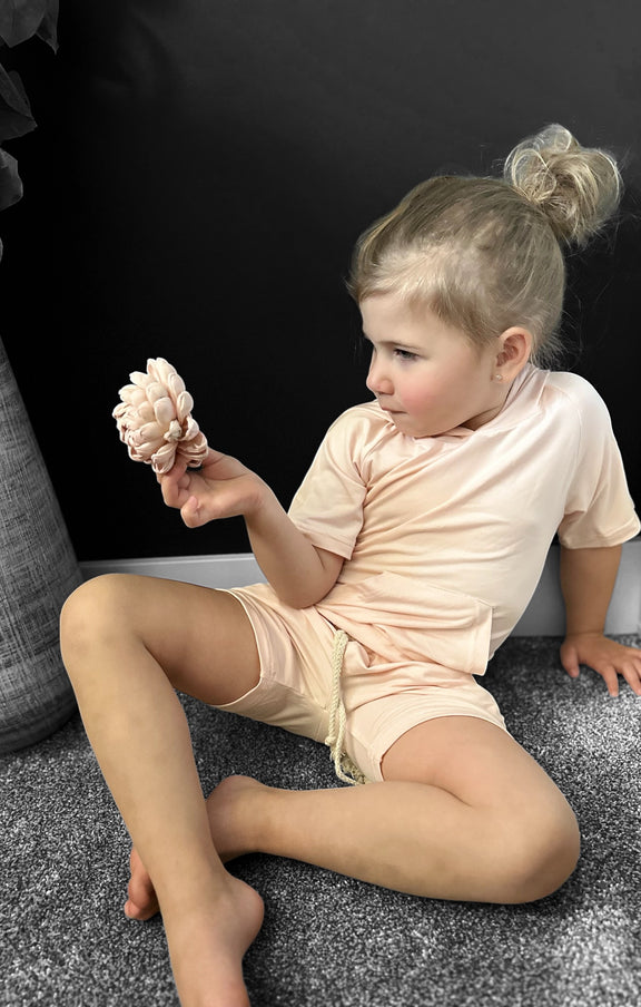Restez au frais cet été avec nos adorables petits ensembles shorty en bambou à capuche ! Ces tenues sont à la fois confortables et pratiques. Fabriqué à partir de 95% viscose de bambou et 5% Spandex.