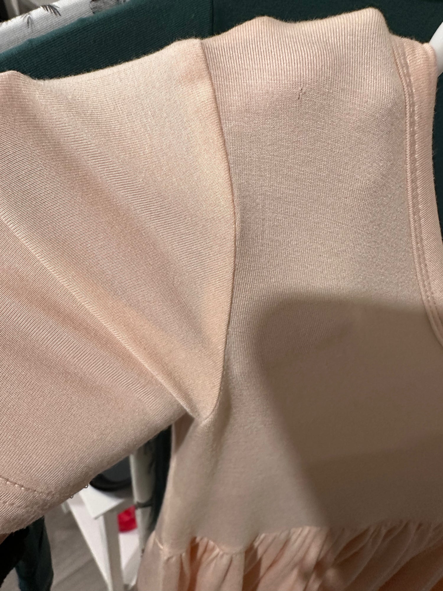 TD-01 Short Sleeve Twirl Dress Oopsie Bin item has untreated small mark on front and pinhole on back left shoulder. No other defects noted.