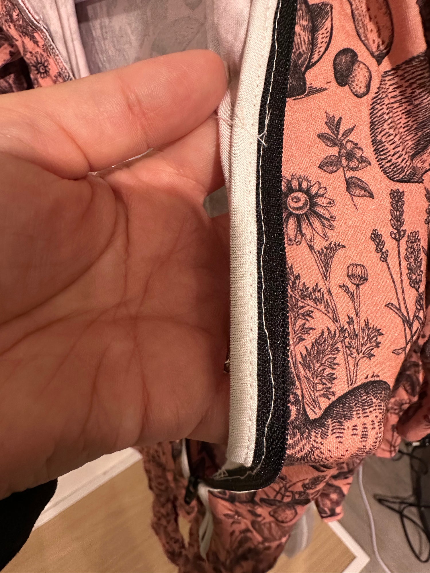 ZS-Stitch Foldover Zipper Sleeper Oopsie Bin items all have minor ugly stitching along the zipper line. Mainly inside zipper, but some could have minor flaws along the outsize zipper line as well. No other defects noted.